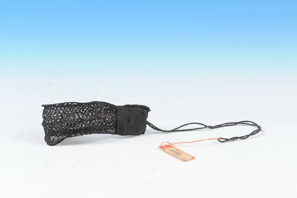 马尾眼罩是鄂伦春人冬猎时,为防止雪光刺眼,用黑色马尾编制的一种保护眼睛的狩猎用品。