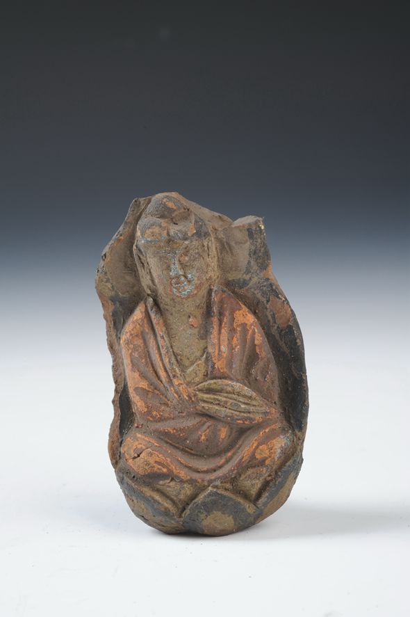 这两尊泥佛是寺庙内墙壁上的“千佛”。渤海的佛像与著名的大同云冈北魏龛佛和洛阳龙门唐代石窟内壁上的“千佛”,在体态、神情、服饰甚至雕造技法上都一脉相承。