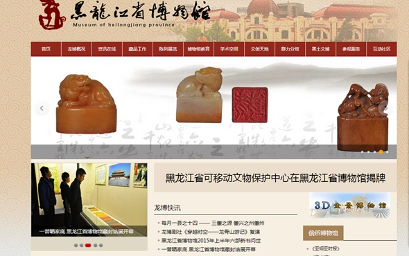在东北网雄厚的网络技术力量支持下,几经设计修改,如今的龙博网站旧貌换新颜。网站容量增加的同时,在原有栏目的基础上扩展了每月一星、每月一县、民俗展览、寒暑假特展,龙博教育、龙博剧社、环球自然日,龙博图书、馆刊馆报、文创产品等栏目,使博物馆的藏品、展览、活动、学术交流、出版的报纸书刊等在网站上一览无遗,初具“网上博物馆”的雏形;新增设的黑土文博专栏,专门介绍全省各个专业、各种类型的博物馆,博物馆网站也由原来的展示黑龙江省博物馆一家风采的平台,扩展为彰显全省各个博物馆风貌、展现全省各地自然、历史、民俗、人文的大展台!更为可喜的是,与此同时,为发挥我省边疆文化大省的地域优势,展现黑龙江历史上的俄侨文化特色,搭建以文化促交流的桥梁和纽带,在全省、乃至全国率先推出了黑龙江省博物馆俄文版网站!