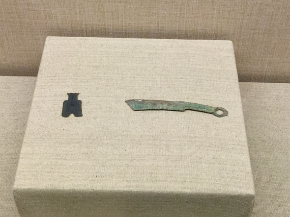 黑龙江省博物馆馆藏的钱币从商代到建国后,时间跨度长达千年,数量也颇丰,其中北宋的靖康通宝,元代的扬州元宝,金代的承安宝货、任应和五十两铤,则属于国宝级珍贵硬币;而民国黑龙江官银分号、民国哈尔滨总商会临时存币五角币、民国干省民国银行壹串文币则是在新中国成立之前,由中国共产党领导的红色政权所属部门专门印制和发行的,只在东北地区流通使用,非常珍贵。另外,我馆还藏有世界上票幅最大的纸币大明宝钞和最小的纸币浙江地方银行一分币、清光绪大清银行兑换券壹文币。此次的钱币特展展出了早至先秦时期的贝币,如商代的海贝,战国的各种平首布、形状各异的刀币、圆钱、方孔钱,汉代“五铢”钱,至盛世唐朝的开元通宝铜钱,晚至清代的机制币,都是难得的一见的古代钱币,令观众大饱眼福。
