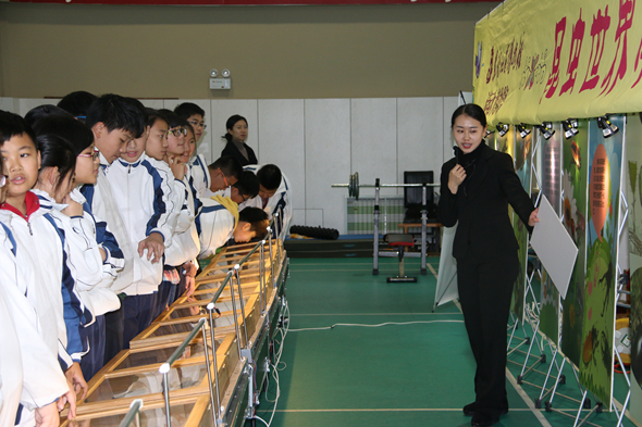 展览主要以图文展板和实物标本相结合的形式,为同学们呈现了一场内容丰富、妙趣横生的展览。讲解员用专业的语言为同学们讲述了锹甲的数量、种类、生活习惯、饮食习惯及饲养方法等知识,唤起了同学们对锹甲的喜爱,受到他们的欢迎。同学们在听讲解时,个个都非常认真。虽然同学们热情高涨,但在参观锹甲标本时,同学们却还是井然有序。他们还积极地与讲解员进行互动,并提出许多他们感兴趣的问题,讲解员都一一进行了解答,现场气氛十分活跃,同学们通过这次活动,也对锹甲有了新的认识。