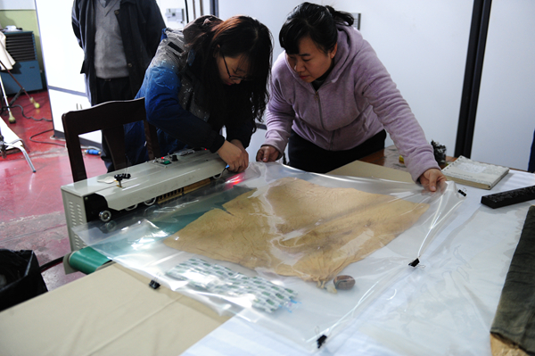 上世纪80年代发掘于黑龙江省阿城市巨源乡城子村的齐国王墓出土了存世量较少的金代纺织品。90年代,这批纺织品经过简单的清理后就一直存放至今,现在当年的RP保护材料部分已失效,需重新更换保护技术。专家论证后,一致认为目前重新更新RP保护技术对该批文物进行密封保护非常必要,因为RP保护袋能够为文物构建一个良好的微观保护环境,从而防止文物发生“氧化、劣化、虫害、霉变、锈蚀”等问题,达到长期保护的目的。RP保护技术也是目前最有效、无损伤、操作简便的先进技术。RP保护袋的更新对以后文物的长期保护修复将奠定良好的基础。