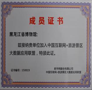 黑龙江省博物馆成功加入中国互联网+旅游景区大数据联盟并获年度先行者奖杯
