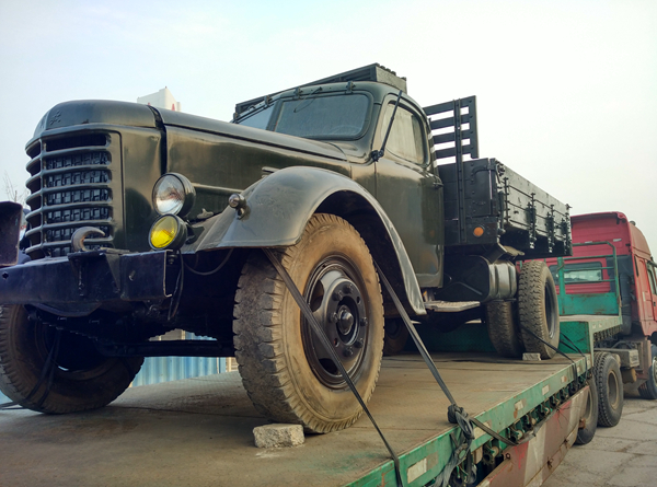 解放牌汽车CA10型,是一款以苏联吉斯150为蓝本制造的汽车,它自重3900公斤,装有90匹马力、四行程六缸发动机,载重量为4吨,最大时速65公里。CA10型是以苏联莫斯科斯大林汽车厂(后改为李哈乔夫汽车制造厂)出产的吉斯-150型载重汽车为蓝本制造的。这种汽车具有发动机开动后均匀性好、刹车系统安全可靠、结构坚固、使用寿命长等特点,更适合我国大规模建设和原材料、燃料供应情况及公路、桥梁负荷等条件。还可以根据需要把它改装成为各种用途的汽车,如公共汽车、加油汽车、运水汽车、倾卸汽车、起重汽车、工程汽车、冷藏汽车和闭式车厢载重汽车等。为此我馆多方联系,专程派人赴天津征集到解放牌CA10老式货车和CA10老式消防车各一台,两台车均保存完好,车辆配件齐全,且能发动。从天津由拖车长途运输至哈尔滨,到达时间为12月25日凌晨3点钟,现放置于哈尔滨太阳岛新馆建设工地。
