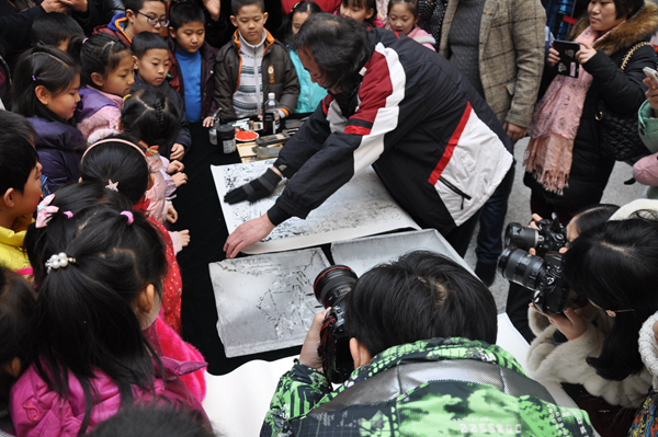 与此同时《黑龙江省博物馆藏朱晓东冰版画作品精选》编辑出版启动仪式、《感受大师》第三期艺术大师朱晓东“青少年美术教育”系列活动也同时开展。开幕式现场朱晓东亲自展现了冰版画的制作过程,