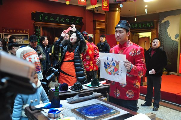 黑龙江省博物馆专业人员为观众展示了原创龙江木版年画技艺的现场制过程并免费赠送给广大观众,此举既是黑龙江省博物馆文化惠民工作的夯实,又是对民族民俗节日全方位、多角度的诠释,更是在深入挖掘与展示民俗节日文化内涵与魅力。