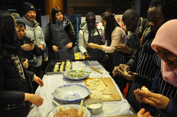 活动当天,黑龙江省博物馆有幸邀请到了来自美国、苏丹、巴基斯坦等国的留学生朋友,他们兴高采烈地参与到包饺子、包豆包的表演活动当中。在龙博工作人员和热心观众的耐心指导下,从揪剂子、擀皮、打陷,到包成饺子,虽几经周折,但最终一个个手艺还不错的饺子呈现在食盘中,一位小姑娘还学会了包花样呢!包团圆包福气包饺子,学会了如何制作神秘的中国饺子,也让外国朋友切实地感悟到中国传统节日的韵味与特点。