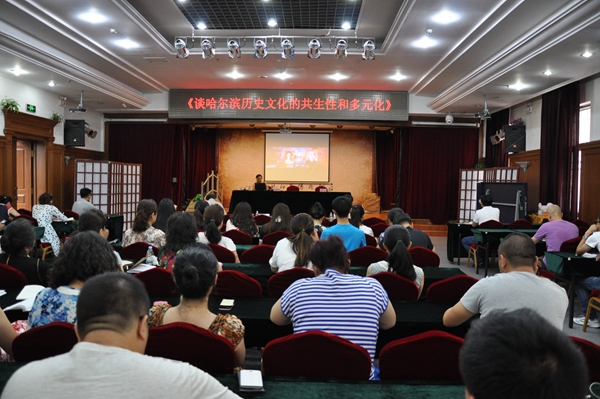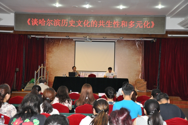 讲座中李述笑先生从物质文化(以建筑艺术为例)、观念文化(以中外政治社会组织、宗教文化为例)、制度文化(以教育制度为例)、行为文化(以节庆习俗为例)等层面多方位地介绍了哈尔滨历史文化的共生性和多元化;以及在中外文化交流、融合的共生过程中,哈尔滨成为西方文化传入中国的陆路窗口,也是将中国传统文化介绍到西方去的重要驿站的这一特质。讲座内容丰富、图文并茂、旁征博引,全面地为大家上了一堂生动的哈尔滨历史文化课!受到大家的热烈欢迎!