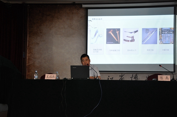 在“北疆艺宝匠心传世——黑龙江省非遗仿古刀剑锻造技艺展”开幕的同时,展览的主办方之一——哈尔滨市啓兵坊刀剑博物馆向黑龙江省博物馆捐赠了乾隆大阅刀、赤壁剑、九龙剑、双狮剑、唐剑共5件精美的仿古名刀、名剑,成为黑龙江省博物馆珍贵的永久收藏。结合展览,同时为了在全馆职工当中普及冷兵器知识,了解馆藏藏品的发展历史,9月7日上午,黑龙江省博物馆特邀王启兵老师做了题为《中国刀剑发展历程及其文化价值和影响》的讲座。