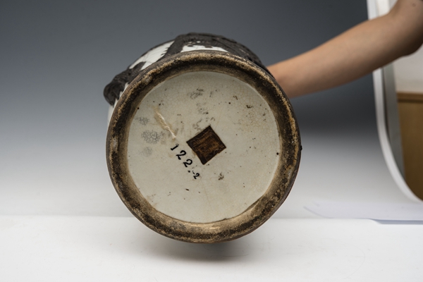 名称:清咸丰白釉开片贴龙戏珠瓶