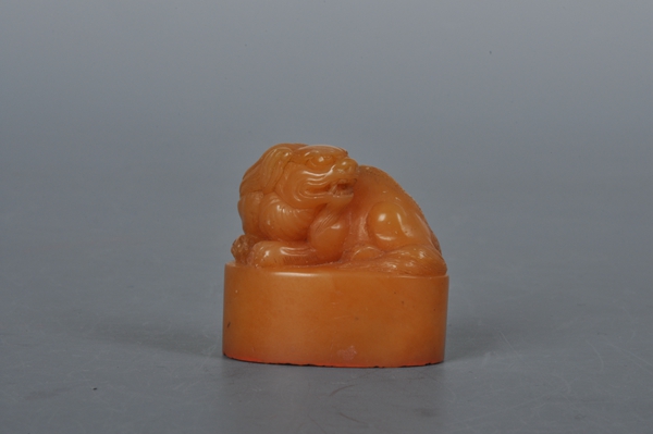名称:清“汾陽韩氏五云堂珍藏印”款刻狮钮田黄石章