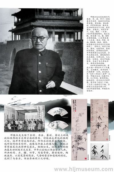1931年至1949年之间,散木先生曾在江南一带连开十二次展览,艺坛瞩目,有书坛的“江南祭酒”之称,在艺坛上有“北齐(齐白石)南邓”之称。他一生勤于艺事,几十年间,黎明即起,临池刻印,至日出方才进早餐,曾手临《说文》十遍,《兰亭》也临过几十遍,去世前几天还在伏案工作;1963年因患胃癌、肝癌在北京逝世。