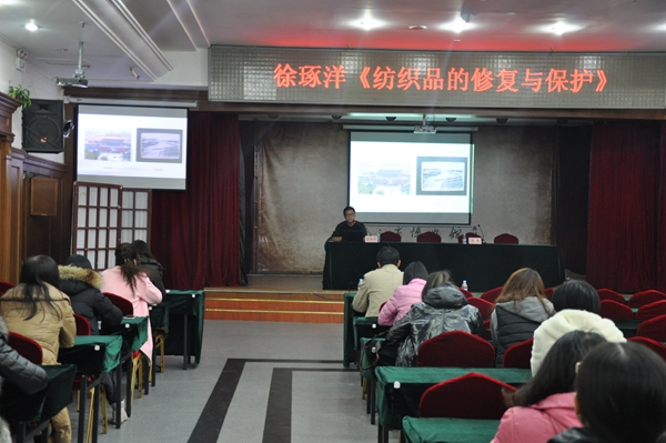 徐琢洋先生在讲座中从纺织品保护修复的历史及发展、纺织品文物的保护修复分类、纺织品文物要遵循的修复原则、纺织品修复的过程四个方面,全方位多角度地介绍了纺织品修复相关知识,讲座内容丰富、旁征博引,受到大家的热烈欢迎。