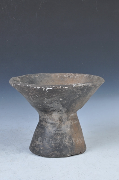黑龙江省博物馆馆藏的三级文物陶豆,出土于东宁县大城子遗址,东宁大城子遗址属于团结文化,该文化主要分布在图们江、绥芬河流域以及俄罗斯滨海地区南部,以柱耳罐和烟道式火炕最有特色。从出土的五铢钱来看,遗址年代距今约2000年,故这件陶豆的年代大致相当中原的汉代。这件陶豆,手制,口径13.2厘米,底径8.8厘米,高10.8厘米。陶豆器壁较厚,胎土明显夹杂砂粒;器表素面,不甚平整光滑,多凹凸不平之处;烧制火候不高,陶色呈红褐色和灰褐色。豆盘较浅,为圆底盘状,与黄河流域的折腹状豆盘有区别;高圈足,圈足呈喇叭状。豆盘与圈足连接处有明显接合痕迹,故该器物应是套接成型。