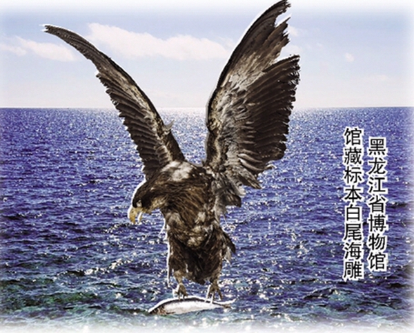 有着浅褐色的头和胸、黄色的嘴与脚、纯白呈楔形且短而平的尾巴,它们就是有着“空中霸主”之称的白尾海雕。作为鹰类中第四大猛禽,白尾海雕如今因环境污染、乱捕滥猎等人为因素,种群数量明显减少,并先后被列入《世界濒危鸟类红皮书》《中国濒危动物红皮书》中。“白尾海雕是我国首批一级重点保护野生动物。与其他鸟类标本数量众多不同,目前,省博仅存有一只白尾海雕生态标本,这也足见其珍贵稀有。”黑龙江省博物馆工作人员介绍道。