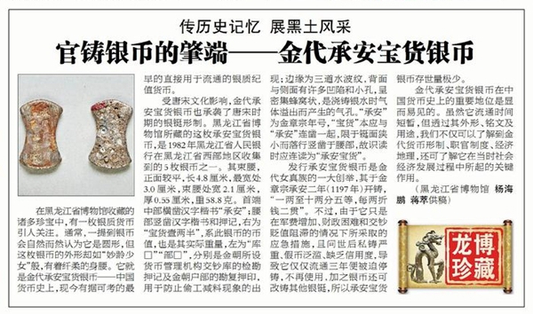 龙博珍藏篇之十五:官铸银币的肇端——金代承安宝货银币