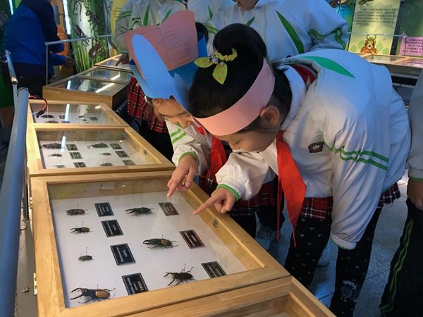 动物的种类很多,有爬行类动物、飞禽类动物、哺乳类动物、昆虫类动物、家禽类动物、鱼类动物、食肉类动物等。这些动物种类中75%都属于昆虫,昆虫中最大的群体就是甲虫,而锹甲就是这1000多种甲虫的统称了。参观过程中,同学们近距离地细心观察,看到了种类繁多、形态各异、大小不一、颜色多样的锹甲,让他们产生了浓厚的兴趣。同学们纷纷表示,不出校门就能看到展览非常兴奋。