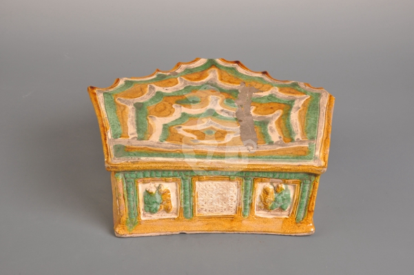 古代瓷枕不单是一种寝卧用具,还兼有号脉、冥用及观赏、收藏等价值。而谈及瓷枕,自然会提及宋代磁州窑系所烧的瓷枕。此时期所烧制的瓷枕种类繁多、造型优美,有虎形枕、如意枕、兽形枕、仕女枕和孩儿枕等,而装饰手法也各具特色,有堆塑、雕镂、绘画或题诗。然而,处于同一时期的辽代契丹人似乎并不满足于仅汲取宋代的烧瓷技术。他们师承于唐,在三彩瓷器逐渐没落于中原之时,缔造出了独具契丹风格的辽三彩瓷器。这些瓷器器形以海棠花式盘、八角方盘等为主,釉色则以黄、绿、白为优,鲜艳华美,色泽浓重。至于辽三彩的装饰题材,也具有北方豪放特色,简单明了,仅以习见的花卉、草、鱼、蝶和流云、水波纹等为主,并采取对称的构图方法加以表现,纹饰则多图案化。