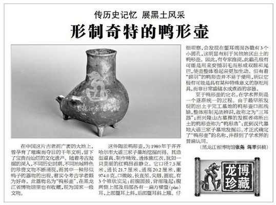 龙博珍藏篇之二十九:形制奇特的鸭形壶