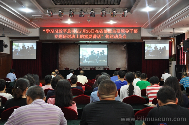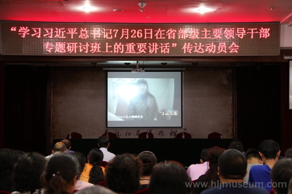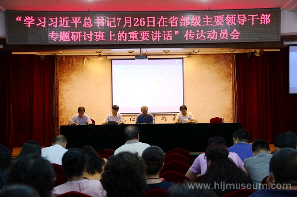 根据黑龙江省委、省文化厅的相关文件精神,黑龙江省博物馆于8月8日下午2点召开了“学习习近平总书记在省部级主要领导干部研讨班上的重要讲话”传达动员会。会议由党委副书记冯北群同志主持,班子全体成员及全馆职工参加了本次动员会。
