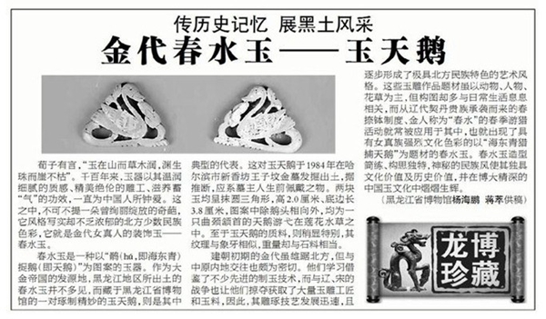 龙博珍藏篇之三十七:金代春水玉——玉天鹅