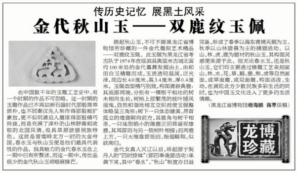 龙博珍藏篇之三十八:金代秋山玉——双鹿纹玉佩