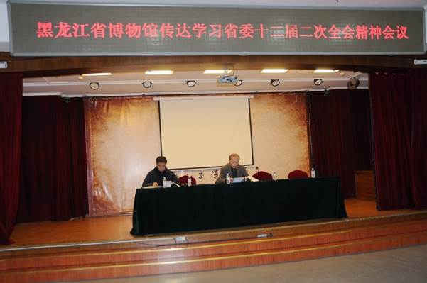 为深入学习贯彻省委十二届二次全会精神, 11月30日下午,黑龙江省博物馆在多功能报告厅召开传达学习省委十二届二次全会精神动员部署大会。全馆职工参加了会议。会议由党委副书记冯北群主持,馆党委书记、馆长王军作传达部署的主旨讲话。