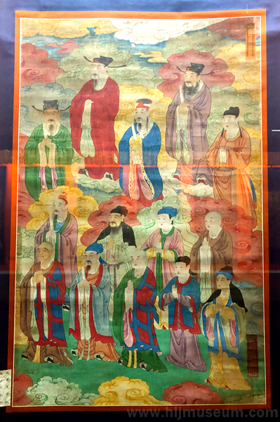3、为儒、释、道三教融合史提供研究资料。隋唐之后,宋元之时,儒、释、道三教合流。但我们多从抽象的文字资料中研究,水陆画给我们提供了十分具体的形象资料。从水陆画中我们得知,它是怎样把儒、释、道三教的神、佛、仙,按地位、按层次、按职能,有条不紊地组织于一个神话系统之中。既不互相矛盾,又合乎情理。