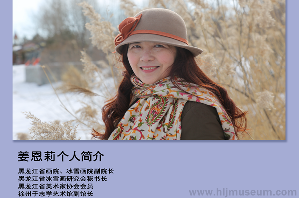 姜恩莉生于哈尔滨。1987年毕业于哈尔滨教育学院美术系,1989年入北京画院深造。现为黑龙江省美术家协会会员,黑龙江省画院、冰雪画院副院长, 黑龙江省冰雪画研究会秘书长。