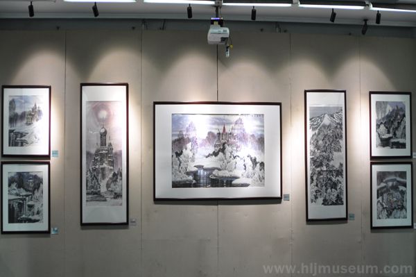 哈尔滨冬天的天空白的耀眼,大朵大朵的雪花飘落到错落有致欧式的建筑上,在冰雪的映衬下银装素裹,更显地域风情……情不自禁地挥笔泼墨传情达意绘出独特的城市风光冰雪画,呈现在家乡人的面前。它诠释了城市建筑与冰雪融合后的壮丽之美、冷逸之美、崇高之美,让人为之赞叹。北国风光如此多娇。