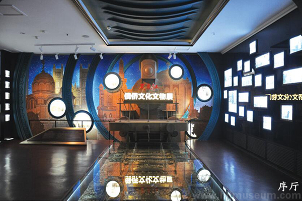 黑龙江省博物馆的展厅大楼本身就是一座俄式老建筑,“黑龙江俄侨文化文物展”展厅位于建筑的一层空间,由五个展厅相互连接,以现有建筑结构为基础,充分利用其空间布局特点,采用“印象派”艺术效果与现代写实相结合的手法,将整个展览设定成为一个由时空隧道穿越至哈尔滨火车站,出站后途经哈尔滨城市街道,最后回到家中的空间转换场景,展线设计简洁实用,使建筑空间实现最大化利用。序厅设计了一组时光隧道,一列由俄罗斯开往哈尔滨的老火车徐徐驶来,复原了中东铁路场景,运用铁路、工商、教育、建筑、科学、文化、生活等诸多方面的典型俄侨文化符号营造展览环境,以“哈埠初成”“商场峥嵘”“尊师重教”“凝固华彩”“科研曙光”“百花齐放”“纸媒风云”“日常生活”等八大单元,引领观众走进那个东西方文化交融的特殊历史时代,让观众跟随俄罗斯侨民的生活轨迹,充分体会俄侨的历史与文化,让中俄友谊在这里得到升华与延续。