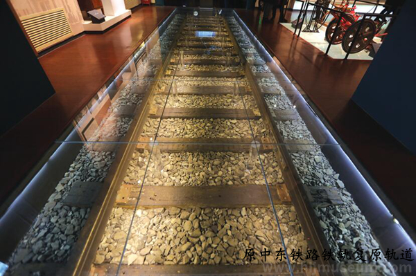 序厅和展厅连接处,借助一条玻璃栈道下的中东铁路铁轨引领观众走入时光隧道重返老哈尔滨,使观众在第一时间感受到中东铁路在文化中的桥梁作用,也自然过渡到后续展厅文化内容的铺陈。