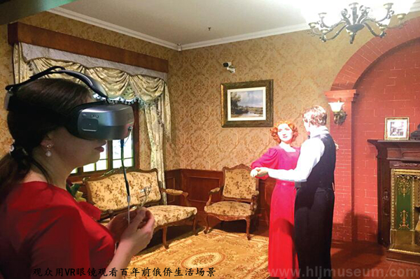 第四展厅,通过场景复原与文物穿插利用的形式,展示了俄侨的日常生活。VR眼罩、新老地图互动游戏、视频播放窗更是提高了观众的感官享受。