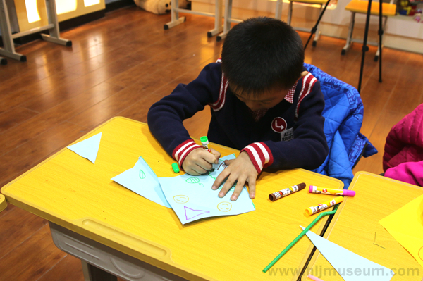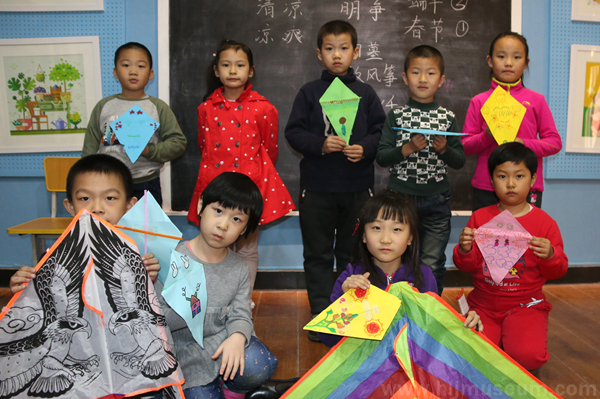 在清明节气期间,微风和煦,天气较为晴朗,适合户外活动,如踏青、放风筝等。风筝的历史悠久,而放风筝更是清明节的习俗活动之一。说到风筝,同学们表现得兴奋不已,于是,课堂上为孩子准备了另一有趣的活动——制作纸风筝。在老师的辅助下,孩子们舞动着灵巧的双手,那一张张普普通通的纸卡片很快就变成了五颜六色的美丽风筝。