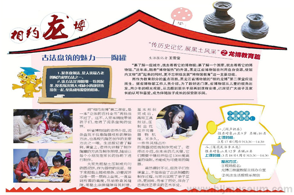“要了解一座城市,就去看看它的博物馆;要了解一个国家,就去看看它的博物馆。”近年来,随着“博物馆热”的升温,黑龙江省博物馆在利用自身资源,使馆内文物“活”起来的同时,更不忘积极发展“博物馆教育”这一主要功能。