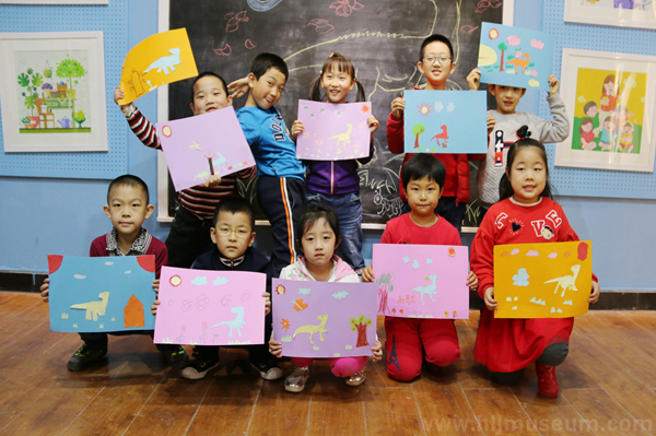 这一天是以“鸭嘴龙”为主题来制作一幅生动的纸贴画。为了贴近实物,让孩子们能够更好地观察并且生动地表达自己的作品,老师带领他们走进了自然展厅来介绍鸭嘴龙的外貌以及生活习性等特征。接下来,孩子们开始动手进行创作,通过自身的观察和领悟,发挥自由想象的能力,除了鸭嘴龙外,星星、太阳、云彩、小草、大树、花朵、蝴蝶等图案经过孩子们的剪裁都活灵活现地呈现在卡纸上。从他们的作品中,可以感受到他们活跃的形象思维能力,有的小朋友还把图案叠加粘贴在一起,使图案更加形象生动。