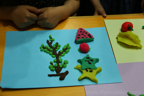随后,小朋友们进行“制作水果”手工比赛。孩子们充分发挥自己的想象力和动手操作能力,有的搓、有的团、有的粘、有的切……橡皮泥通过孩子们灵巧的手,变成了种类各样的水果。随着时间一分一秒的过去,一件件作品也陆续完成了。在此过程中,孩子们各显神通,捏出来的作品栩栩如生、形象生动,充满了童趣。