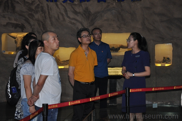 随后,在黑龙江省博物馆馆长王军陪同下,武汉中共中央机关旧址纪念馆馆长袁钢一行先后参观了博物馆近几年来规模最大、品类最全、数量最多的“黑龙江历史文物陈列——以肃慎族系遗存为中心”展览,突出黑龙江特色的古生物与动物、展现纷繁多样的黑龙江地域自然资源和风貌的自然陈列,荣获第十五届(2017年度)全国博物馆十大陈列展览精品推介优胜奖的黑龙江俄侨文化文物展,以及展示邓散木书法、篆刻的“铁笔翰墨——邓散木艺术专题陈列”。