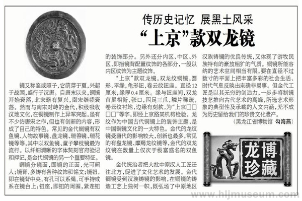龙博珍藏篇之七十五:“上京”款双龙镜