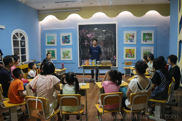 课上,老师将事先准备好的一份份材料和制作工具分发给孩子们。而手绘双鱼纹彩色陶瓷盘则非常考验小朋友的动手能力,他们需要通过拓稿、描轮廓、平涂颜色、细节处理等较为复杂的步骤来完成。可孩子们似乎并未被步骤的繁琐而难倒,反而场面十分温馨。看!他们正与家长们一起手绘双鱼纹彩色陶瓷盘呢!