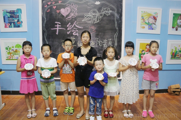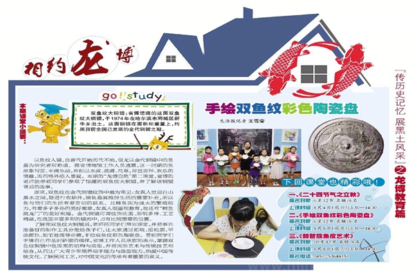 了解完双鱼纹大铜镜后,老师把同学们带回课堂,并将事先准备好的制作工具分发给孩子们,让大家通过拓稿、描轮廓、平涂颜色、细节处理等步骤手绘双鱼纹彩色陶瓷盘。看到同学们手捧自己作品时骄傲的模样,老师欣慰地表示道:掌握双鱼纹铜镜中鱼图案的结构与造型,并将民俗艺术与传统技艺相结合,从而让广大青少年培养动手能力与造型能力,热爱中国传统文化、了解民间工艺,对中国文化的传承有着重要的意义。