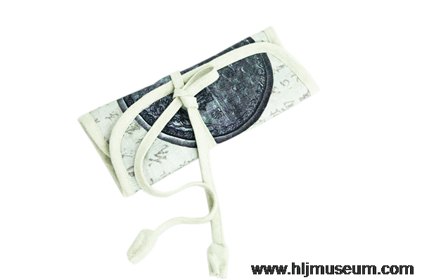 亚麻餐具包以黑龙江省博物馆镇馆之宝金代山水人物故事镜为原型设计。水人物故事纹铜镜是女真贵族曾经使用过的一件器物,距今已有千年的历史,是我国目前保存最为完好的金代铜镜。铜镜采用写实与夸张相结合的艺术手法,构图虽然复杂,但布局合理,工艺精湛,堪称中国金代铜镜的佳作。亚麻餐具包以铜镜为主画面,色彩统一、风格古朴,是一件极具艺术感的文创产品。