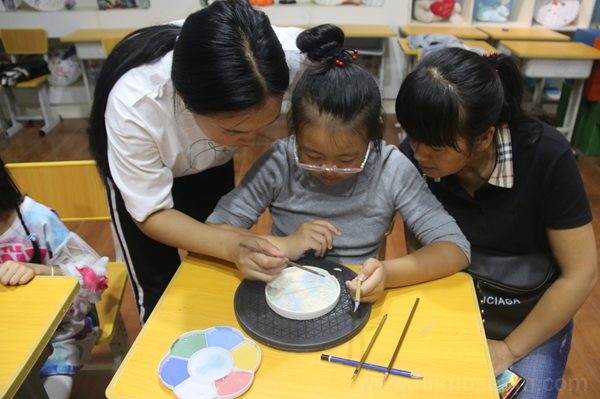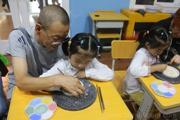 2018年8月26日,“相约龙博”课堂带领小朋友们学习如何绘制唐三彩陶瓷瓦当。