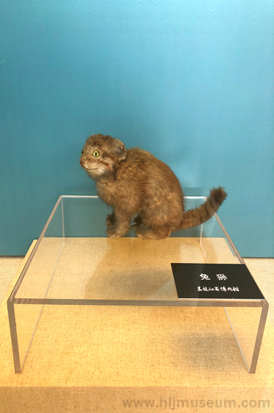 兔狲现见于我国内蒙古、新疆、西藏等地的灌丛草原、荒漠草原、荒漠与戈壁,曾经也分布于黑龙江省部分地区。上世纪中后期开始,兔狲的野生种群数量逐年减少,其主要原因是人类为了获取它们的皮毛而对其进行乱捕滥杀。另外,为了消灭有害啮齿目动物,如鼠、野兔等,人类所使用的药剂也会影响到兔狲。可兔狲对防治鼠类危害有着重要作用,所以我们应该尽可能去保护它们。目前,兔狲已被我国列为国家二级重点保护动物。这件兔狲剥制标本制作于上个世纪四十年代,具有悠久的历史以及珍贵的科研价值。