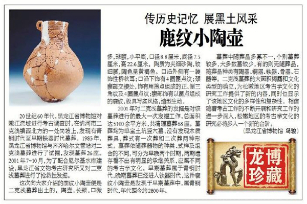 这件收藏于黑龙江省博物馆的鹿纹小陶壶即为