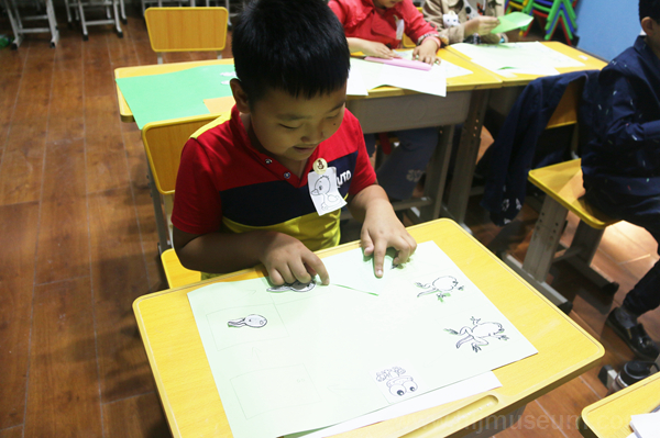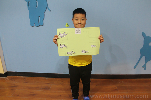 在随后的课堂上,小朋友们通过观察蝌蚪发育的动图,争先恐后地剪贴知识图版,从而对青蛙的变态发育过程有了更深入的理解,有的小朋友甚至还举例说出了毛毛虫变蝴蝶的过程其实也是变态发育过程。