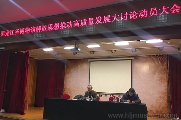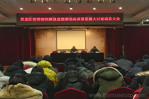 为深入贯彻落实习近平总书记在黑龙江考察和在深入推进东北振兴座谈会上的重要讲话精神,根据黑龙江省委、黑龙江省文化和旅游厅党组通知要求,2018年12月27日下午,黑龙江省博物馆在馆多功能厅召开以“解放思想推动高质量发展大讨论”为主题的动员部署大会。黑龙江省博物馆党委书记、馆长王军同志作动员讲话,全馆职工参加会议。
