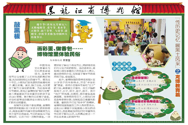 中国传统文化有着无与伦比的生命延续力,各传统节日也承载了人们对生活的美好祝福,就比如刚刚过去的端午节。提及这个节日,小朋友们首先想到的就是吃粽子、戴五彩绳。但除了这些,大家更应了解节日背后的故事。为此,在每年端午节期间,黑龙江省博物馆“相约龙博”第二课堂都会教给小朋友们一些相关知识,并开设丰富多彩的亲子互动手工课程。而制作五彩粽子香包、手绘彩蛋等活动,则深受小朋友及家长们的欢迎和喜爱。