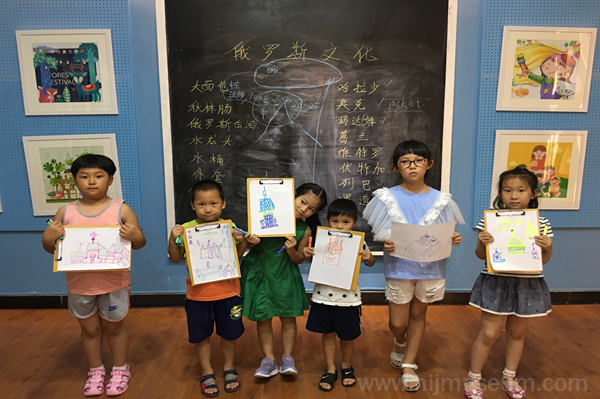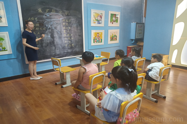 课堂开始,老师先是介绍了关于俄罗斯这个国家的基本概况,并引出本节课的中心内容——俄侨为哈尔滨在住房、语言、饮食等方面带来的新变化,小朋友们都听得聚精会神。随后,小朋友们手牵手一起参观黑龙江俄侨文化文物展。看到精美的建筑物模型,孩子们兴奋极了。
