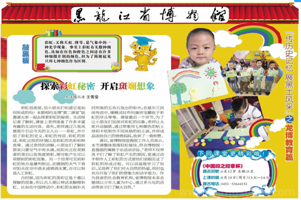 本节课整体氛围轻松愉快,符合博物馆一直提倡的“寓教于乐”活动宗旨。老师不仅带孩子们了解了彩虹产生的原因,更通过动手制作人工彩虹的方式使他们亲眼见证了彩虹的形成过程。可以说,既学习了知识,又培养了他们对大自然的热爱,同时也充分开发了他们的想象力和动手能力。作为黑龙江省的社会教育机构,黑龙江省博物馆未来会继续以少年儿童为中心,通过多元化的活动带孩子们了解大自然。